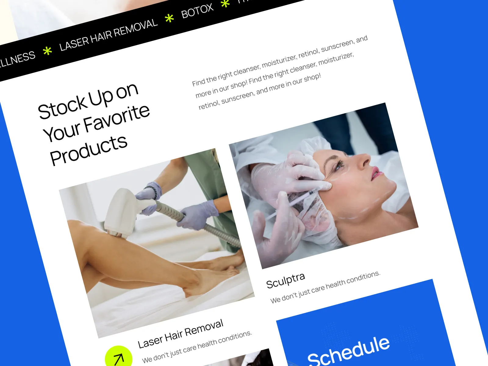 This medical spa website was designed to communicate professionalism, trust, and modern aesthetics through a clean, refined interface. Neutral tones, spacious layouts, and treatment-focused imagery create a calming digital environment that reflects the experience of visiting a premium med spa, while the hero section introduces key services with clear messaging and strong visual emphasis.